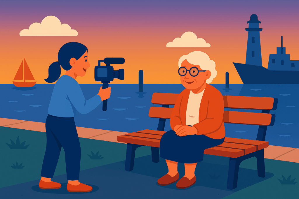 Je pose des questions simples et bienveillantes pour dérouler le fil de la vie : enfance, famille, métier, souvenirs marquants, anecdotes… Rien n’est figé, on suit le rythme de la personne.